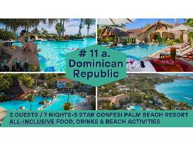 All-Inclusive Trip to Dominican Republic Two guest spend 8 days/7 nights at the 5 Star Confesi Palm Beach Resort in Puerto Plata, Dominican Republic. Includes one room, all meals at onsite restaurants, alcoholic (house brand) and non-alcoholic beverages, live dinner theater nightly, pool & beach activities, fitness center, steam and sauna at the resort. Also included is a dedicated travel booking agent to assist with planning. NOT included is airfare, travel, gratuities, industry taxes ($175pp).