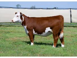 Don't miss out on this female! A full sib to the $60,000 high seller at the 2022 National Hereford Sale in OKC. She is a direct daughter of the great Z03! This cow family deserves plenty of attention as Z03 herself was the Reserve Bred and Owned Female at the 2013 NJHE, her mother is the great TCC Miss Shelby 82 ET, and grand dam is Two Timin 438. Z03 has been so vital for us in the last few years. She is getting down to the end of the road and age is starting to creep up on her. Take advantage of the awesome cow potential here on this long necked, big hipped female with loads of power and dimension.