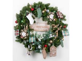 Included--Battery-operated, lighted 30" wreath with gift cards: