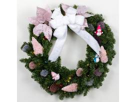 Included--Battery-operated, lighted 30" wreath with decorations and gift certificates to:
