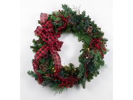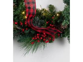 Included--Battery-operated, lighted 30" wreath with decorations and gift cards: