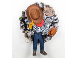 Included--Battery-operated, lighted 30" wreath with decorations, gift, and gift card: