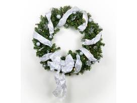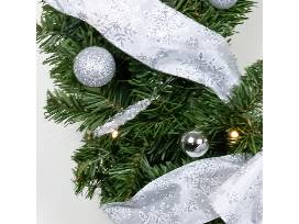 Included--Battery-operated, lighted 30" wreath with decorations and gift card: