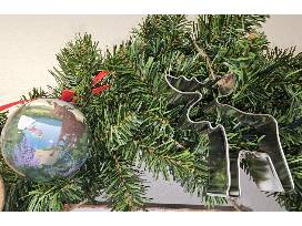 Included--Battery-operated, lighted 30" wreath with decorations, gifts and gift cards: