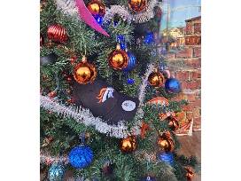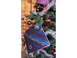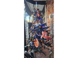 - Broncos and Aves themed shatterproof Christmas decor (mini footballs, mini hockey pucks, orange, blues, and maroon bulbs, and red and white lights)