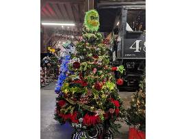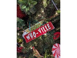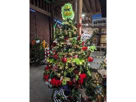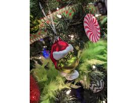 Brightly colored green and red decorations along with festive swirls and prints will adorn this fun and festive Grinch themed tree!