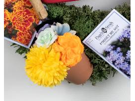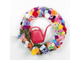 Included--Battery-operated, lighted 30" wreath with decorations and gifts: