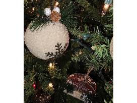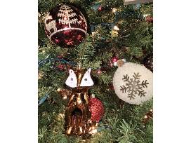 - Woodland-Themed Tree Decorations and Red Christmas Lights
