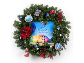 Included--Battery-operated, lighted 30" wreath with decorations and gift card