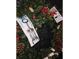 Included--Battery-operated, lighted 30" wreath with decorations, gifts and gift cards:
