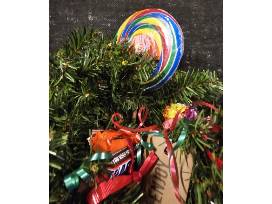 Included--Battery-operated, lighted 30" wreath with decorations, gifts and gift cards: