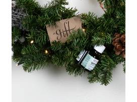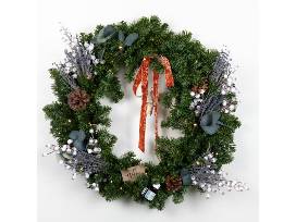 Included--Battery-operated, lighted 30" wreath with decorations and gifts: