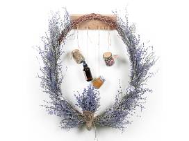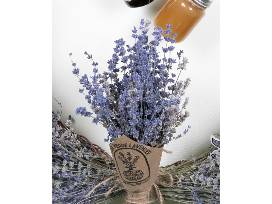 - Products from the farm - a Lavender bouquet, Lavender honey, Lavender hydrosol, and Lavender teas