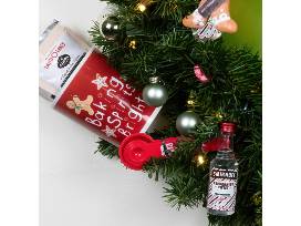 Included--Battery-operated, lighted 30" wreath with decorations and gift card:
