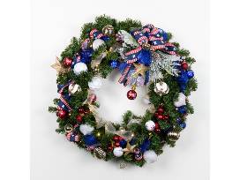 Included--Battery-operated, lighted 30" wreath with decorations and gift card: