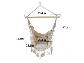 This simple, suspended seat has a cocoon-like embrace to make snuggling, reading, listening to music, and other leisure activities a more enjoyable experience. Handcrafted from soft and durable polyester cotton ropes. A sturdy wood spreader bar stabilizes the swing and lets it support upwards of 440 lbs of weight. The strategic oversized design ensures there is enough space for optimal relaxation. Conveniently located on the side of the swing is a side pocket for storage. Store your phone, tablet, book, magazine, drink, or more. Designed with portability in mind, this swing can easily be relocated anywhere. Attach this swing to a branch, beam, or hammock stand for easy setup. Suitable for both indoor and outdoor spaces. Enjoy this swing in the bedroom, on the patio, balcony, in the yard, garden, park, or more.