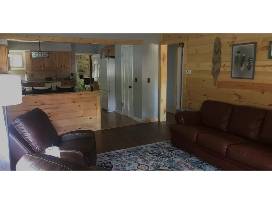 This auction listing is valid for a 3 night stay at the River House Home. 2 story home with game room, hot tub, and riverfront access. Sleeps 12. Upper level features 2 bedrooms and sleeper sofa. Full kitchen and bathroom. Lower level has 1 bedroom and futon. Full bathroom and kitchenette with garage door accent for additional lighting and river views.