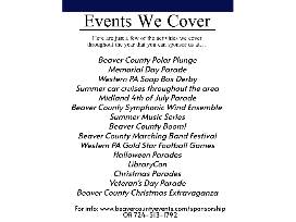 When you decide to sponsor the activities of Beaver County Events, you are publicly sharing your belief in the building of strong communities thru positive, family-friendly events.