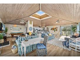 Head up to the second level of this home. Make a cup of joe in the kitchen and step out onto the wrap-around porch. Admire the views from every angle while you bask in the morning sunshine. Back inside the home, plop down and relax while watching your favorite movie on the flatscreen TV. The chief of the group will delight in a well-equipped open concept kitchen. Craft a delicious meal and enjoy it in the spacious dining room! When the evening is through, step over to the billiards table and play a game of pool.