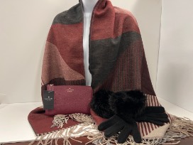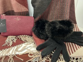 Kate Spade berry wristlet, soft surrounding black fur gloves and a beautiful shawl.