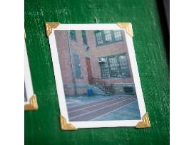 The photo series captures 4 unique vantage points of the PS34 playground on a format that is irreproducible. The one-of-a-kind photos are mounted on green painted