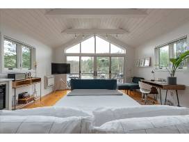 Brand new Scandinavia-style riverfront home on 8 acres w tons of privacy. 20 min from Hudson. Sit on your porch for coffee/drinks/dinner filled w sounds of a rushing river, or walk across the river into your own private swimming pond! Perfect for a nature retreat, hiking, swimming, fishing, skiing, the solo parent escape to recharge, work w mountain views or write that novel you have always wanted to finish. 2 hrs from the George Washington Bridge.