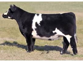 Another big, strong cow with a quality calf on her side, this is a favorite in the offering. She does a strong job with her calves and her baby this time has size, muscle, and good looks. This cow is a daughter of our former donor and Holiday Classic Sale featurie, Painted Elegance, that now works for Granny Creek Farm, OH.