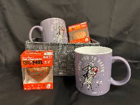 Indulge in sweet treats with a selection of Valentine candy, while sipping from matching Jack Skellington and Sally mugs from Nightmare Before Christmas. These enchanting mugs bear the words "Love You to Death" and "Forever and Always," adding a touch of spooky romance to your Valentine's Day. Bid on this unique basket to embrace a love story that transcends the ordinary, blending sweetness and a touch of the macabre in perfect harmony.