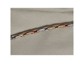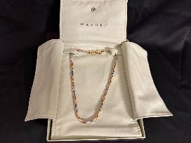 This stunning 16-inch necklace was crafted from exquisite 18K three-tone gold. This piece seamlessly blends the timeless allure of yellow, white, and rose gold, creating a sophisticated and versatile accessory that adds a touch of luxury to any ensemble. Bid on this opulent necklace to grace your collection with a symbol of enduring beauty and refined craftsmanship.