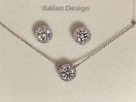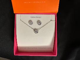 1Elevate your style with the "Italian Elegance Zirconia Ensemble," a dazzling matching necklace and earring set up for auction. This exquisite set showcases Italian design at its finest, featuring a pendant and earrings crafted in sterling silver with a lustrous gold overlay. The centerpiece of each piece is a large zirconia, surrounded by a delicate halo of smaller zirconias, creating a stunning and harmonious composition. Bid on this timeless set to add a touch of sophistication and brilliance to your collection, embracing the allure of Italian craftsmanship and sparkling elegance.
