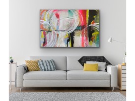 Medium: acrylic and spray paint on wrapped canvas