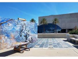 Size HxWxD; 60" x 120" x 3 3/4" mixed media on wrapped canvas.