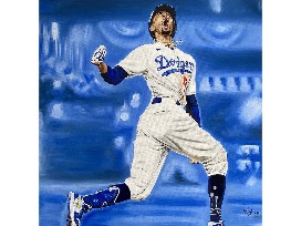 Inspired by the photograph of Mookie Betts, by Lucas Stevenson. Capturing Mookie Betts, Dodgers player, during World Series Championship 2020.