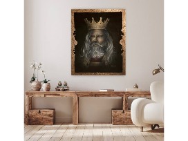 All the features in this painting reflect one word (Majestic)..from the colors, to the sharp eyes, to the power of the look and the strong hair, to the stable crown. All are reflecting the (Majestic King)