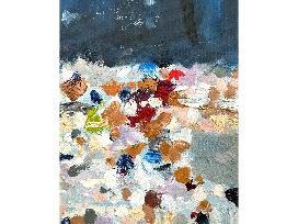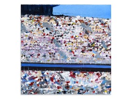 My paintings showcase the energy of crowds in a way that is both familiar and new. I strive to impact the viewer by giving them a subject that is easy to connect to and by placing them as the reason the group congregates. In participating with the work, the viewer shifts between subject and spectator examining their own relationship with labor and leisure.