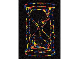 Stephen began painting in 2017. He works in acrylics and limits himself to white, black, red, blue, & yellow. The canvas is primed. The primary colors are then mixed on top of that in a random fashion. Finally black is used to form an image in last layer. This process mimics the scratch art he used to do with crayons as a child.