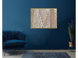 This painting "HEART OF THE FISHERMAN" portrays the action of a diligent fisherman on his quest to catch the biggest fish in the sea. The artwork is presented in a gold shadow frame. "Vintage" wine has been thrown, poured, and splashed on the canvas. This painting features intricate details such as gilded silver lines and 24K gold hearts.