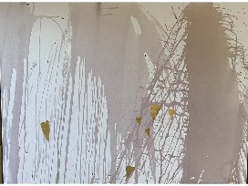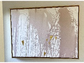 Medium: Wine and paint, gilded silver lines and 24K gold hearts on framed canvas