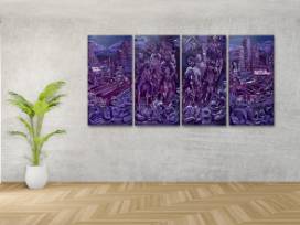 Medium: Canvas, Acrylic Paint, Spray Paint, Satin Varnish Finish stretched over a spruce/pine frame