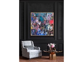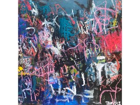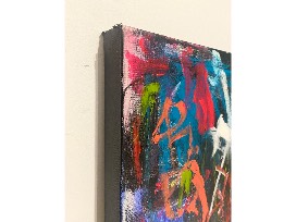 Medium: Acrylic, oil stick, spray paint, pastel on gallery wrapped canvas - Edges painted black, back wired, ready to hang