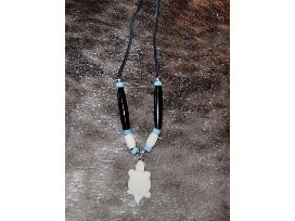 Medium:Bone Hairpipe, Bone pendant, Glass Seed Beads, Leather Cord, Alloy