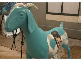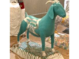 The GOAT is cast primarily out of Fortron, a material made to withstand the outdoors; however certain embellishments may do better in a protected environment. The goat is approximately 70 lbs, 60 inches long, 48" tall, and 23" wide.