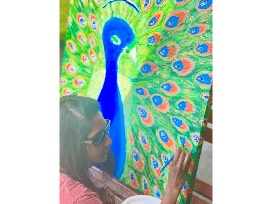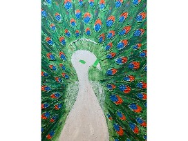 This life-like peacock created by blind artist, Shellyann Siddoo took several months to complete. What is also so incredibly amazing about this piece is that you can feel your way around the painting. Shellyann used modelling paste to give the painting it's three dimensional look and she also uses it as an indicator to feel her way around the canvas. If you are looking for an INSPIRATIONAL, UNIQUE and MESMERIZING piece of art, this is it!