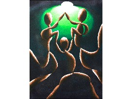 Santa Cruz-based visual artist, Tavernelle Wells, employs a unique, organised style of diagonally weaving brushstrokes to create depth and layers of meaning. This intricate texture blends her once-corporate existence with her creative practice. Her paintings are her visual journal capturing her creative journey. Each engages the viewer to consider a contemplative life.