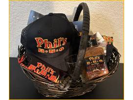 Phil's BBQ $100 Gift Certificate along with a T-shirt, hat, spatula, bottle opener, some koozies, front-of-the-line passes, bottle of BBQ sauce, and bottle of Gooba Dust! It's a barbecue dream!