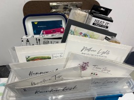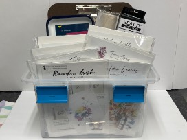 Art Bin, Sketch Board, Ecoline Liquid Watetrcolors, Enamel Butcher Tray, Painter's Tape, Natural Sponges, Dr. Ph. Martin's Bleedproof White, Micron Black Ink Pens, Collapsible Paint Water Cup, Let's Make Art Sarah's Favourite Brush Bundle, Watercolor Paper, Let's Make Art Under the Hill Watercolor Project, Let's Make Art Language of Flowers Watercolor Art Box, Let's Make Art Northern Lights Watercolor Kit, Let's Make Art Loose Autumn Leaves Watercolor Kit, Let's Make Art Mountain Top Watercolor Kit, Let's Make Art Flower Sprig Watercolor Kit, Let's Make Art Mountain Top Watercolor Kit, Let's Make Art Hummingbird Watercolor Kit and a Heat It Craft Tool.