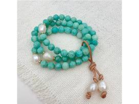 Green Saffiano leather large Michael Kors Jet Set travel tote plus Silver and Sage, Spring of calm : handmade amazonite, pearl and leather bracelets