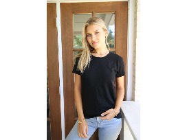 2) Our Black Perfect Basic Jeans Crew! Made with our exclusive 100% pima cotton slub material, this tee is both super comfy and stylish. With side vents and a slightly longer length in the back, it's the perfect everyday tee that flatters your figure without being too tight or boxy. Plus, with its tagless design, you won't have to worry about any annoying tags itching your skin.