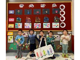 Children in Mandarin Preschool 2A used their fingers to paint colored dots and draw colored dandelions and snapdragons on the bag, forming a colorful and colorful scene. It expresses that when spring arrives, the earth will be full of flowers, which is too beautiful to behold.