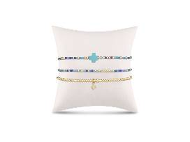 Bracelet stack of 3 includes: (1) egirl Hope Unwritten Bracelet - Water You Doing?, (1) egirl Hope Unwritten Signature Cross Bracelet - Water You Doing? - Turquoise, (1) egirl Classic Gold 2mm Bead Bracelet - Signature Cross Small Gold Charm